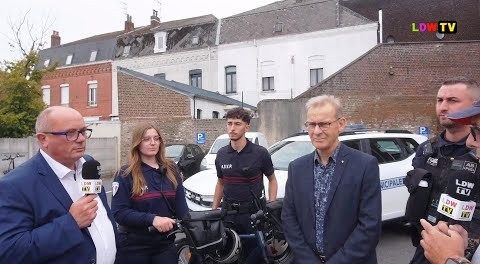Deux nouvelles recrues à la police municipale de Caudry Nouveaux vélo, nouvelle voiture et nouvelles caméra interview de Frédéric Bricout, Maire de Caudry