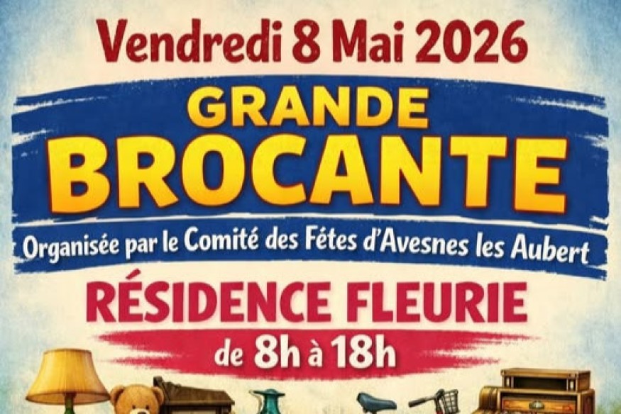 Le Comité des Fêtes d’Avesnes-les-Aubert organise une grande brocante ouverte à tous, le vendredi 8 mai 2026, de 8h à 18h, au sein de la Résidence Fleurie. Cet événement convivial réunira particuliers, commerçants et artisans dans une ambiance chaleureuse. Les tarifs d’inscription sont fixés à 1 € pour les particuliers et à 2 € pour les professionnels. Sur place, les visiteur...