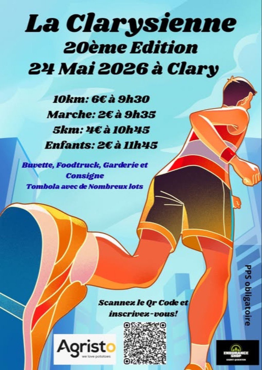 Le Comité des Fêtes de Clary vous donne rendez-vous le dimanche 24 mai 2026 pour célébrer la 20ème édition de La Clarysienne, un événement sportif et convivial devenu incontournable dans la région.